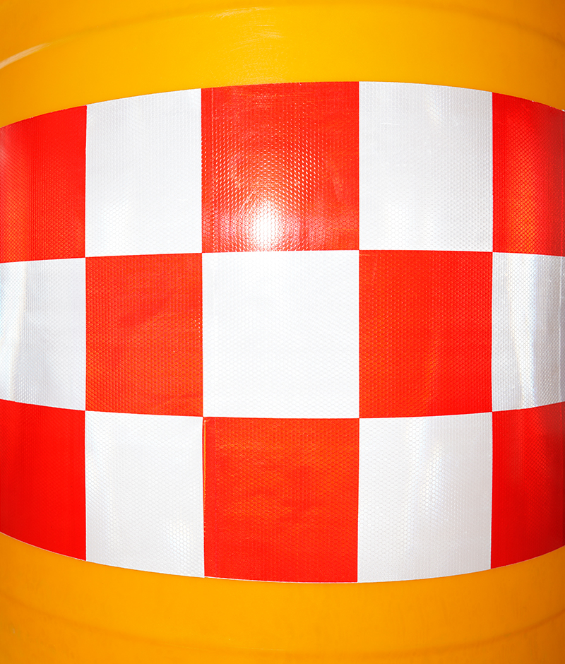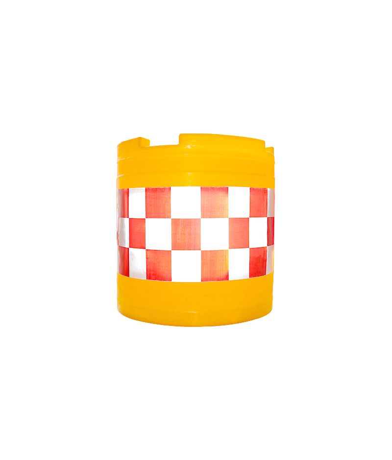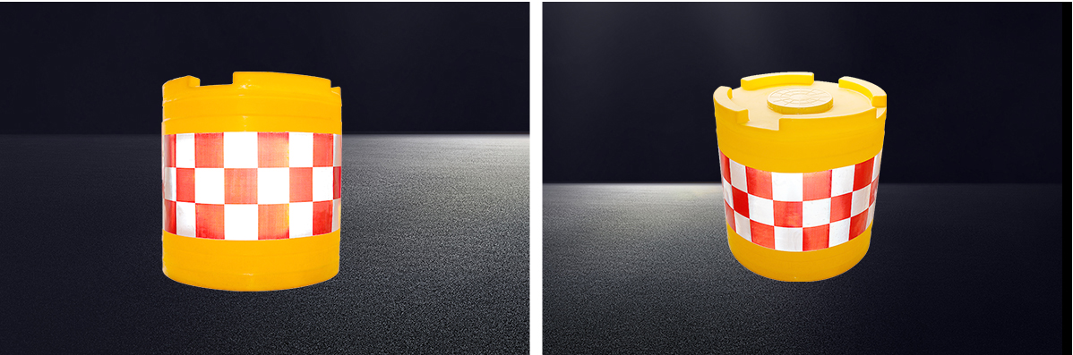 2、防撞桶桶色為橘紅色,色澤鮮明亮麗,貼上紅白反光膜夜間更加醒目。