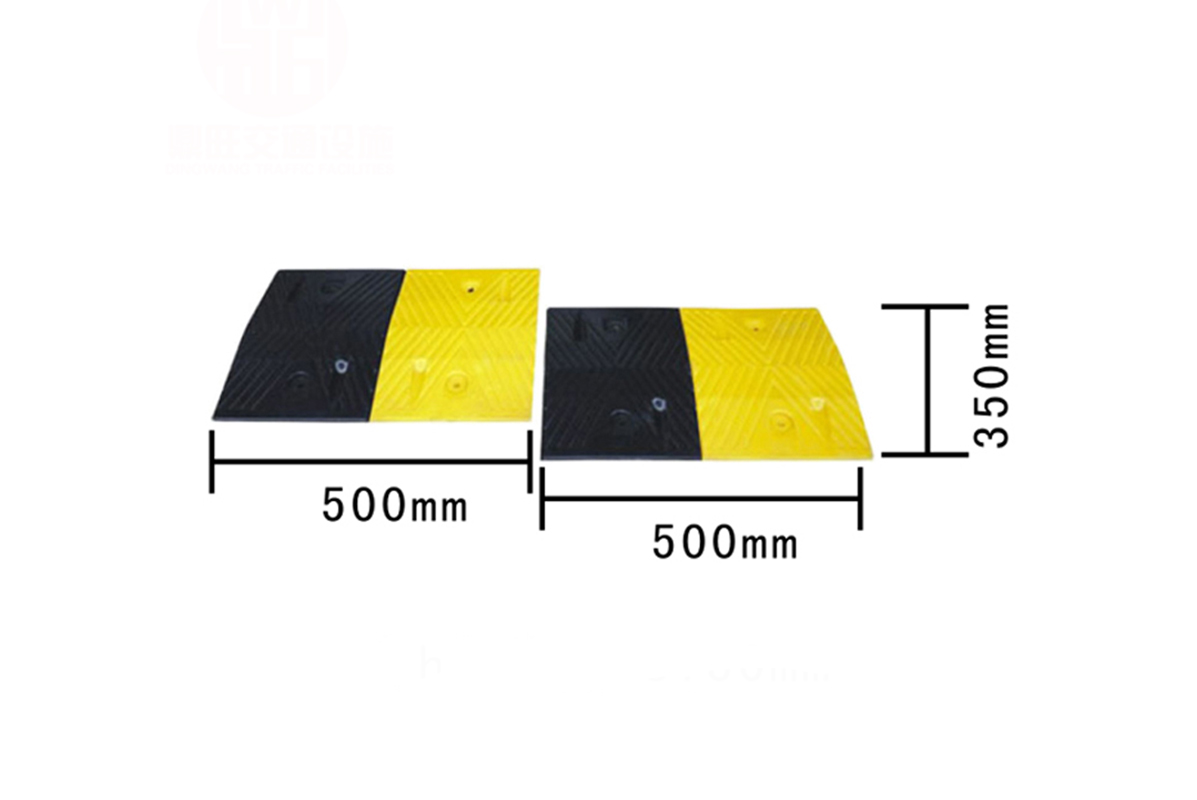 材質(zhì):由高強度橡膠制成,橡膠減速帶減震性、抗壓性極好,壽命長,對車磨損少,噪音少,顏色為醒目的黃黑相間,色彩分明,無論在白天或夜晚都具有高度可視性。